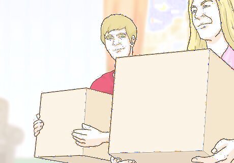 Work through each room of your home together. As a family you should work together to declutter your home and be more minimalist with the things you own. Go through each room of your house together and throw out items you no longer use or no longer need. Be quick and efficient as you do this, as you do not want to get too attached or sentimental about certain items. You may try to embrace compromise as a family so you can still keep items that you value. For example, you may all make a deal that you can keep one or two sentimental items in your rooms and get rid of the rest. If you cannot throw away too many items, you may try using storage bins to store the items so they are out of sight and the room is free of clutter.