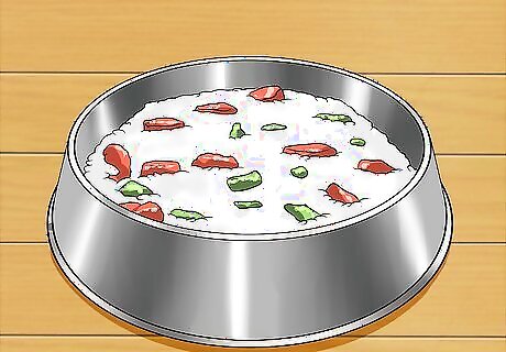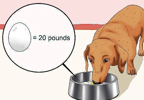 Add eggs and dairy in small amounts. Eggs and dairy can provide a variety of nutrients your dog needs such as protein and calcium. Take care not overfeed your dog though. You should typically only feed one egg for every 20 pounds your dog weighs. If your dog weighs less, you'll need to scale this down appropriately. If you decide to give your dog dairy, consider offering cottage cheese or goat's milk. Since not all dogs can digest the lactose in most dairy, watch for upset stomach.