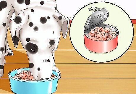 Consider feeding your dog fish. Fish is a great way to add protein to your dog's meals. It also has high levels of omega fatty acids which are essential for a healthy coat. Fish is also rich in vitamin D which helps your dog convert calcium into strong bones. You can offer your dog a small amount of fish every day or a fish meal twice a week. Add about one ounce of fish for every pound of other meat. Good fish choices include tinned: Tuna Mackerel Sardines (packed in water, not oil) Pink salmon