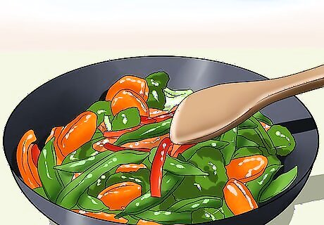Cook the vegetables. Wash your vegetables and chop them into bites that your dog can manage. Saute the vegetables in a pan with oil until they're soft enough for your dog to easily eat. Good sources of vegetables include: Broccoli Zucchini Carrots Green beans Celery Spinach Summer or winter squash