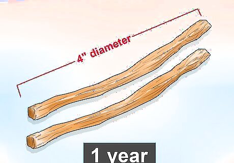 Let the wood season. At this point the bow stave should be kept under cover and not exposed to extreme temperature or humidity changes until it is seasoned. Typical wood cures at a rate of 2" per year, so a 4" diameter log will take approximately a year to season, while a 12" diameter log could take three years.