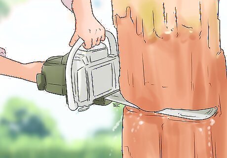 Cut down the right tree at its base and remove the chosen section. Its length should be 1' to 2' longer than the envisioned bow's final length.