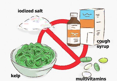 Avoid consuming iodine. Avoiding iodine in the days leading up to the exam will allow your thyroid to absorb the iodine dye used in the test. This ensures that your healthcare provider will receive the best results possible. Your healthcare provider may ask you to stick to a low-iodine diet for 2 weeks before the scan. Medications and other substances that contain iodine include: Iodized salt Multivitamins Kelp Cough syrup Amiodarone heart medicines (such as Pacerone or Cordarone)