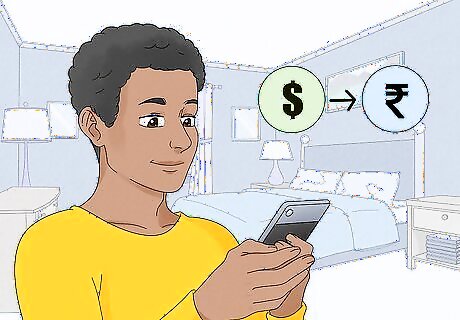 Find out the international exchange rate. You can find international exchange rates by searching for currency converters online. For example, you could search "convert Nepalese rupees" to find the rate of that soft currency. Do some calculations and become familiar with what the foreign currency equals in your home currency. You should carry some of the local cash on hand, but be sure to use an ATM or visit a bank, rather than paying exorbitant fees at conversion centers in the airport. It's also a good idea to see how much things you may need or want (like coffee, a newspaper, a hotel room, a bottle of wine) cost in your destination country so you aren't surprised upon arrival.