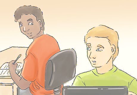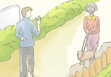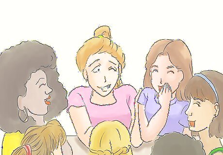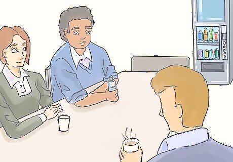 Put others at ease with a relaxed smile and an easy joke. Smile naturally––a forced smile will make you look ghoulish. The best way to cultivate a relaxed smile is to completely clear your mind and focus on something pleasant or peaceful like a garden meadow or a sunset. The smile will come naturally if your mind if filled with positive thoughts. When it comes to jokes, keep the topics light, tasteful, and appropriate. If small quips aren't your thing, smile and stick to conversation about the weather.