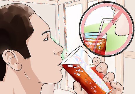 Sip beverages from the glass, not through a straw. Drinking through a straw can cause you to swallow extra air, which can lead to excess gas. Instead of drinking through a straw, sip your drinks right from the glass.