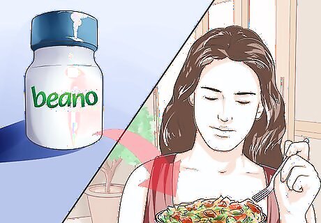 Add Beano to foods to prevent excess gas. Beano contains alpha-galactosidase, which helps prevent excess gas. In a double blind study, people who consumed foods that contained the Beano had significantly less flatulence than those who did not receive food that contained Beano.