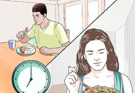 Eat slowly. Eating too quickly causes you to swallow air, which may cause you to have excess gas. To prevent this side effect, take your time when you eat. Chew your food well and take breaks between bites to slow down your eating and reduce the amount of gas that you swallow.