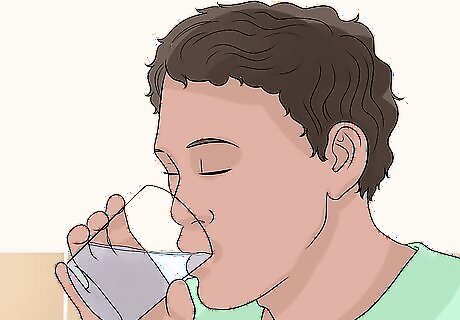 Drink lots of water to stay hydrated. Water is an essential nutrient that hydrates your body and helps flush out toxins in your system. Drink 15.5 cups (3.7 L) per day if you're a man or 13.5 cups (3.2 L) per day if you're a woman. Your fluid intake should be enough to keep your urine light yellow or clear.