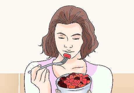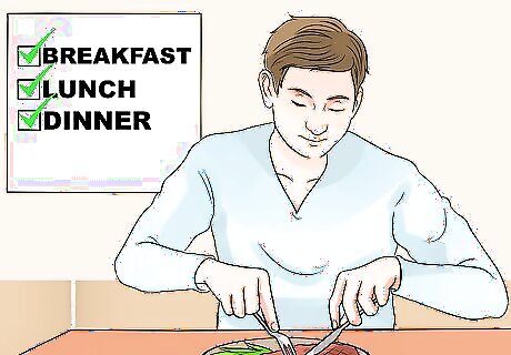 Eat regularly to manage your bile production. Skipping meals results in sporadic bile production, which can increase your chances of forming a gallstone. It is healthier to eat at regular intervals and avoid skipping meals. Every day, eat 3 healthy meals.