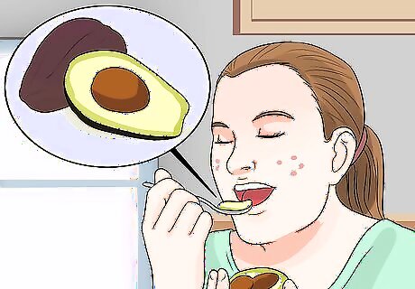 Include unsaturated fats in your diet to reduce your gallstone risk. Although saturated fats contribute to the formation of gallstones, poly- and monounsaturated fats help prevent them. These are usually known as "good fats." Good fats help keep the gallbladder empty, which reduces the formation of gallstones in bile. Include foods high in good fats in your diet to help prevent gallstones. Olive oil. This is a source of good fat and helps reduce cholesterol. Regular consumption of olive oil (about 2 tablespoons daily) may reduce the risk of gallstones. Avocado. Not only is avocado a great source of good fat, but it also helps your body absorb other nutrients more effectively. Seeds. Pumpkin, sunflower, and sesame seeds can help lower cholesterol. Nuts. Nuts such as walnuts deliver beneficial fats to your body, and can also help lower cholesterol. Fatty fish. Fatty cold-water fish such as salmon, tuna, and mackerel contain high levels of polyunsaturated fats and omega-3 fatty acids, which promote overall health.