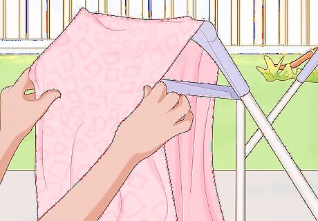 Dry damp clothing immediately so it doesn’t form any mildew. Don’t let wet clothing or fabric sit around since it will start to develop mold and mildew. Instead, put them in a machine dryer or hang them on a rack to air dry completely. Make sure there’s good airflow in the area you hang items to dry or else they’ll stay damp. Wet clothes can make your home more humid if they’re air-drying, so use a dehumidifier to help remove some of the moisture.