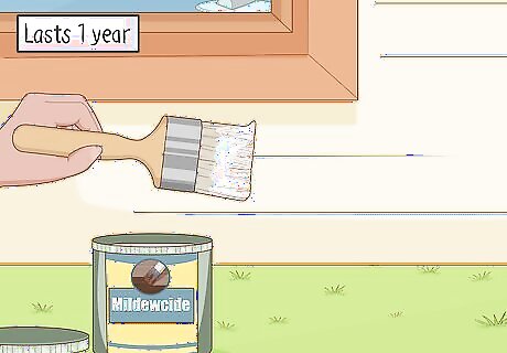Apply a mildewcide to exterior walls to protect them. Mildewcide is a preventative chemical that stops mildew from growing on surfaces, such as exterior walls or roofing. Get mildewcide for interior or exterior use depending on where you want to apply it and follow the directions carefully. Make sure to coat all of your walls evenly so there aren’t any gaps where mildew can grow. You can buy mildewcide from hardware and home improvement stores. Mildewcide usually lasts for 1 year before you need to reapply it. Many interior paints have mildewcide mixed in them already, but if they don’t, you can stir it in yourself.