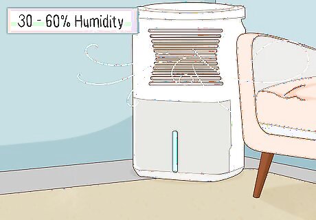 Use dehumidifiers in rooms that have a lot of moisture. Dehumidifiers take the moisture out of the air and make your room less humid. Run your dehumidifier during the day to absorb the moisture and make stop mildew spores from growing. Aim to keep your home between 30-60% humidity so it’s comfortable and mildew-free. When it’s not humid outside, turn off the dehumidifier so it doesn’t get too dry in your home. You can buy dehumidifiers from any home goods or appliance store.Tip: Some dehumidifiers have timers so you can set them to turn on and off and certain times during the day.