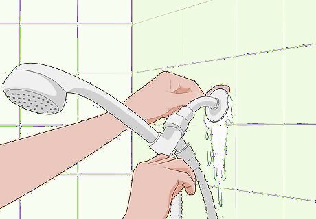 Fix any leaks as soon as you notice them. Mildew needs moisture in order to grow, so leaky pipes or showers can be problem areas. Look around your home for any water fixtures that have water pooling near them or that have a leak. Either try to patch the leak yourself or hire a professional to fix it for you . If an area in your home smells musty, you might have a leak or standing water nearby. Check any faucets or pipes nearby to see if there is any water coming out of them.
