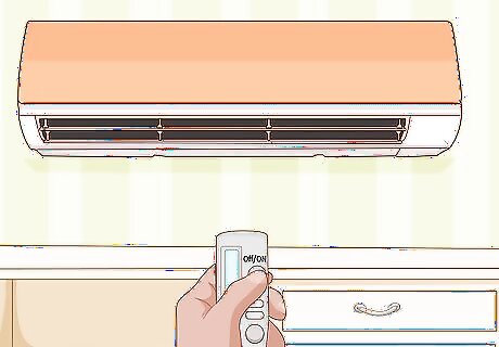 Turn on an air conditioner to keep the air cool in hot, humid weather. Air conditioners help lower the humidity in your home and keep your space cool so mildew can’t form. Keep your windows closed while you run the air conditioner so the cold air doesn’t escape. Run your air conditioner frequently during humid weather so mildew doesn’t have a chance to settle on the surfaces. You can either use a central air conditioner or a window unit to cool your home. Use an air conditioner as well as fans to move the cool air throughout your home so you have good airflow.