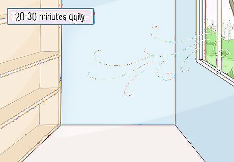 Allow light into dark, musty areas so mildew is less likely to grow. Closets and basements are susceptible to mold and mildew since they are dark and enclosed spaces. Leave closet doors open when you can so they can air out and get light throughout the day. If you can’t leave the door open, put a small, battery-operated light in the space and turn it on for about 20-30 minutes each day. Keep curtains and blinds open throughout the day so your home gets direct sunlight.
