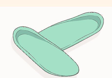 Fit your shoes with shock-absorbing insoles to reduce impact. Shoes with hard insoles or poor arch support can contribute to pain from shin splints. Try fitting your shoes with insoles that support your arches and provide a shock-absorbing cushion for your feet. Orthotic inserts that are designed to keep your foot and ankle stable may also help. Ask your doctor, an orthopedic specialist, or a physical therapist for advice. You can purchase supportive inserts in a shoe store or pharmacy, or have them specially made by a physical therapist or orthopedist.