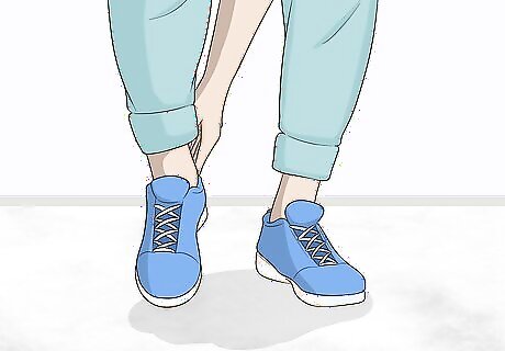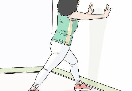 Stretch your shins and calves to improve flexibility. Doing light stretches might help your shins feel better. Try the following stretches to ease your pain and loosen up your muscles: Stand with your heels about 6–12 inches (15–30 cm) away from a wall and lean your back against the wall. Gently raise your toes toward your shins so that you’re resting on your heels, and hold this pose for 5 seconds before slowly returning your toes to the floor. Repeat this stretch 10-15 times. Face a wall with one foot about shoulder’s-width in front of the other. Bend your front knee slightly. Keep your back leg straight and push your hands against the wall so you feel a light stretch in your calf. Hold the stretch for 30 seconds, then repeat on the other side. While you’re performing a calf stretch against the wall, bend your back knee slightly. This will stretch the soleus muscles in the back and sides of your calf. Hold the stretch for 30 seconds, then switch sides.