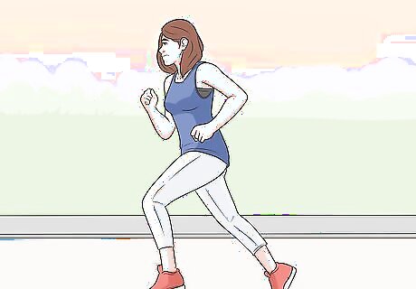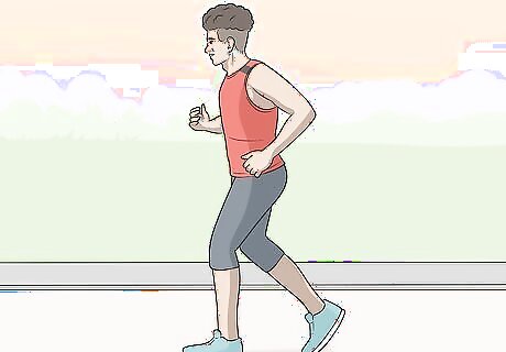 Warm up your muscles before you run. Doing a pre-run warmup can improve circulation in your muscles, make your joints more flexible, and reduce your chance of injuries like shin splints. Before you run, spend at least 5 minutes doing a slow jog or brisk walk to get your blood flowing. If you have time, follow up with 5-10 minutes of dynamic movements, such as:Be aware: You may have heard that you should stretch before running. However, doing static stretches (i.e., deep stretches that you hold for up to a minute) before running can actually loosen your muscles too much and make you more prone to injuries. Squats Lunges Mountain climbers Skips