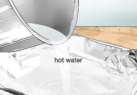Fill the baking pan with boiling water. Boil water in another pot or a kettle so you have enough to completely submerge the silverware. Once the water’s boiling, pour it into the baking pan so it combines with the salt, baking soda, and vinegar.