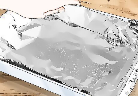 Line a baking pan with aluminum foil. Pick a baking pan that’s large enough to hold all of your silverware at the same time. Use pieces of aluminum foil to completely cover the bottom and sides of the baking pan. Make sure that none of the pan shows through the foil or else the cleaning may not be as effective. Once you start cleaning, the aluminum reacts with the silver to remove the tarnish.