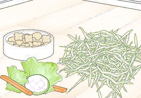 Limit certain vegetables to 1-2 times a week. Vegetables that retain high amounts of water, such as lettuce and cucumbers, should be limited. Not only can they cause stomach upset and bloating, but they are also void of nutrients. High-calcium vegetables, such as spinach and kale, should also be limited to minimise the risk of developing bladder stones.