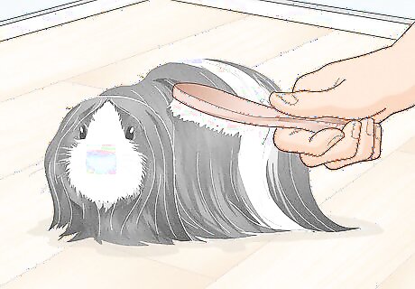 Brush your guinea pig's hair frequently. While brushing your guinea pig's fur isn't necessary if they are short-haired, such as Abyssian or American breeds, if your guinea pig is a long-haired breed, they should have their hair brushed every day with a soft-bristled brush to prevent matting.