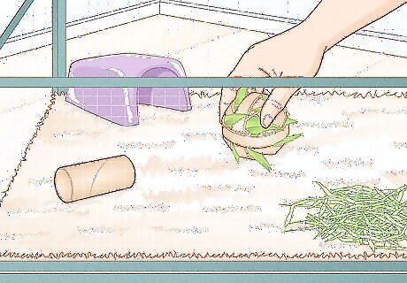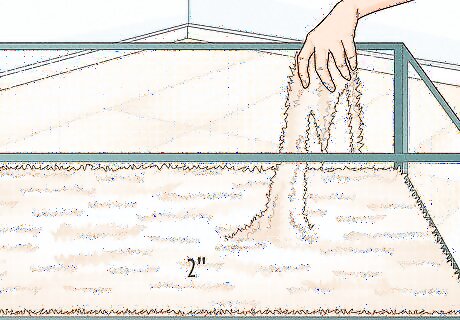 Fill the base of the cage with 2 inches of bedding. Fleece, wood shavings, and paper bedding are among the most desirable bedding materials. However, it's important to research the type of bedding and brand you'd like to use, as now all materials are safe or absorbent. Cedar wood shavings are toxic. Pine can be used, providing that it is kiln-dried and dust-extracted. Otherwise, guinea pigs are prone to developing respiratory issues due to the phenol and dust. Do not use straw, corn cob bedding, sand, or cat litter. These types of bedding are not only dangerous to guinea pigs, but they are uncomfortable for their feet as well.