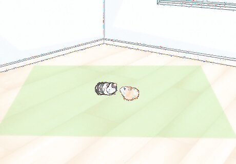 Give your guinea pigs plenty of space. 1-2 guinea pigs require 7.5 square feet of space at a minimum, however, 10.5 square feet is preferred. The more space you can provide your guinea pig, the happier they will be. Small animal cages often utilise vertical space to increase living area and encourage climbing, digging and burrowing. However, guinea pigs rely on floor space. Ramps and platforms at low heights provide variety, but guinea pigs need room to exercise, even with daily playtime outside of the cage.