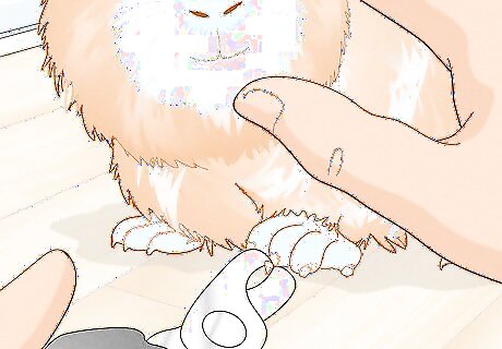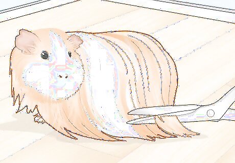 Trim your guinea pig's hair every so often. Long-haired breeds, such as Shelties or Peruvians, should have the bottoms of their hair trimmed every two weeks, and a full trim every month. Trimming your guinea pig's hair prevents matting and knots from forming.