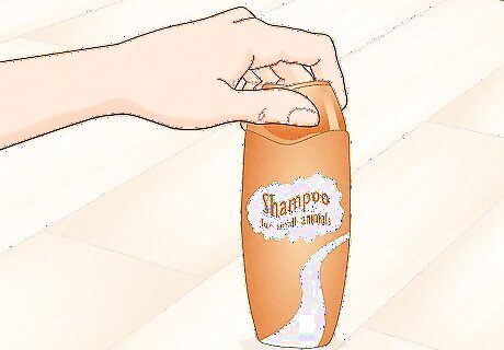 Purchase a special small animal shampoo. You can purchase a shampoo brand that specialises in guinea pigs from a pet store or your local vet clinic. Do not use human or dog shampoos on your guinea pig, as these can be too harsh on their skin.