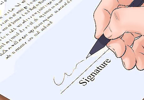 Execute the final agreement. Once you're satisfied that the surrogacy agreement adequately protects your rights, both you and the intended parents must sign the agreement so it can be legally enforced in a court of law. Make sure both intended parents sign the agreement. In some states, depending on the surrogacy arrangement, your spouse also may be required to sign the agreement. Having all parties sign the agreement in front of a notary public provides an additional layer of protection for you fi the intended parents try to back out of the agreement. You might also consider signing in front of witnesses who will be able to testify in your behalf if any problems occur.