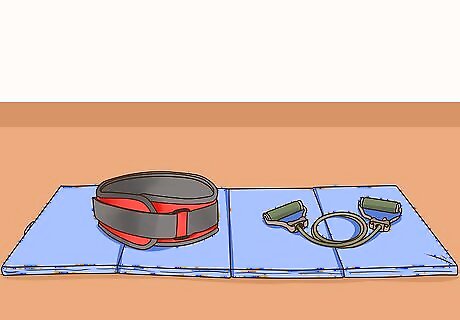 Bring your own exercise equipment. Items such as exercise mats, weightlifting belts, and resistance bands should be solely yours since they closely touch your body and absorb sweat. Sharing these items will promote the growth of fungus and bacteria. If buying these items in not an option, consider laying down a towel when using a gym's exercise mat, and using disinfectant wet wipes such as Lysol brand to clean belts and resistance bands.