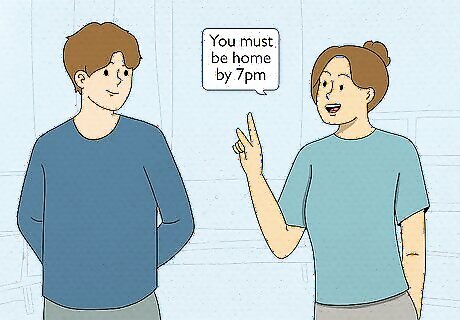 Establish the rules. Make sure that all caretakers are on board with the rules. It is very important that everyone is on the same page with discipline so that the children are unable to split or undermine adults. Try to include your children in making some of the rules. However, it's okay to have some nonnegotiable rules on important issues like curfew, grade expectations, church attendance, or anything else that is important to your family. Identify “off limits” behavior. Examples of off-limits behavior might include things like saying “I hate you,” engaging in aggressive behavior, calling people names, cheating, using profanity, or playing derogatory music. You choose the off-limits behavior that is the most appropriate for your lifestyle and establish rules around them. Make sure that the rules are concrete and specific so that there is no room for misinterpretation. For example, it is better to establish the rule “You must be home by 7pm” then to say “You must be home before it gets dark.”