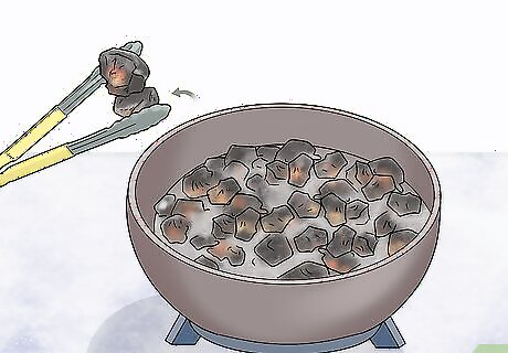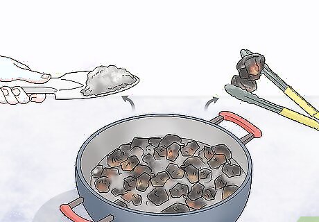 Use a pair of tongs to return the largest pieces of charcoal to the grill or fire pit. Next time you use your grill or fire pit, you can light the leftover briquettes to get the fire going faster. Put them into the bottom part of the grill or pit to store them. Large pieces of all-wood charcoal are best to save since charcoal briquettes are typically spent after cooking with them once. Charcoal can still be hot, even after 48 hours of cooling, so be sure to use tongs to handle them.