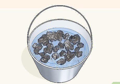 Douse the coals in a metal bucket of cold water. Transfer the hot coals immediately to a bucket of cold water to put them out. Use a metal bucket, since the heat from the coals can cause plastic to melt. Don't dump any water on a grill since this can cause damage and make the grill harder to clean.