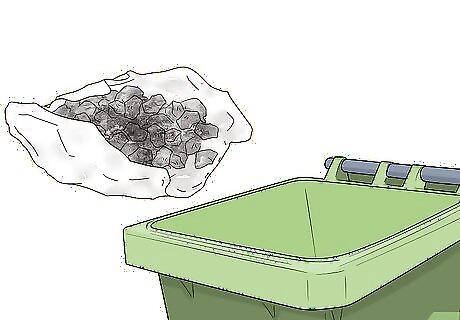 Wrap ashes and charcoal in aluminum foil to dispose of them. Don't throw any ashes or charcoal directly into the trash. Even a small spark can cause your trash to catch on fire if a piece of charcoal is still burning. Make sure the charcoal and ashes are completely wrapped up in the aluminum. It's safest to use metal to wrap the ashes. Hot ashes can melt or burn plastic and paper.