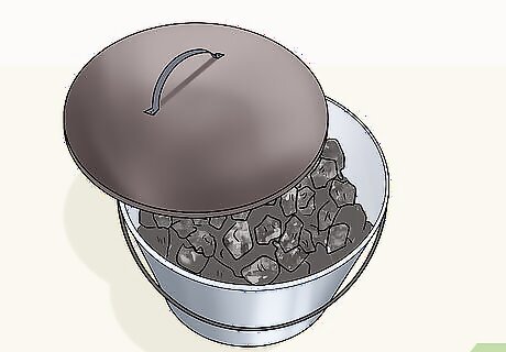 Close the grill or fire pit for 48 hours. Wear heat-proof gloves while handling your grill to protect your hands from getting burned. Close the lid and any vents your grill has to prevent any air from getting to the coals. For a fire pit, place the lid over the opening. This will cause the fire to burn itself out. Shut your grill down right away after cooking. Charcoal takes a long time to cool down and it can be dangerous to leave it open. Do not pour water on your grill to cool it down faster. The dramatic change in temperature can cause your grill to crack, and the water will mix with the ashes and harden, making it much more difficult to clean out.
