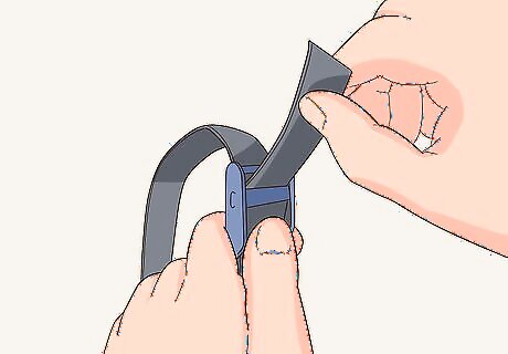 Weave the strap through the bracket of the wheel base. Guide the long strap included with the wheel kit through one of the holes on the front side of the bracket, then out through the adjacent hole. Pull the strap until both ends are aligned and stretch it out to its full length. Make sure there are no twists, folds, or snags in the strap.
