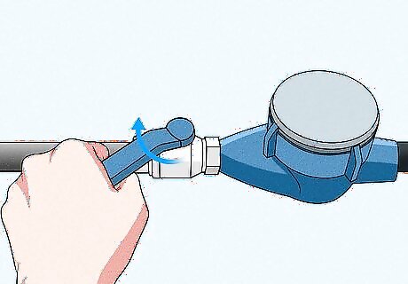 Locate the water shut-off valve. This is located next to your water meter. Once you have located your water meter, the valve next to it will be the water shut-off valve. By turning off the shut-off valve, you will stop all water from entering your home, thus minimizing water damage.