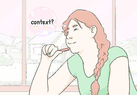 Think about context to better understand the symbol. Context can be anything that adds meaning and relevance to literature. Look for context clues that might be included in the description of something historical, cultural, or political to help you better understand what a potential symbol means. For example, maybe an author is using the sea as a symbol and you’re not quite sure what it means. Think about what you know about the character’s background to find context. If they talk about happy memories sailing with their family, the sea might represent peace and tranquility. On the other hand, if the character has vivid memories of almost drowning, the sea could be a symbol of danger. You might also consider the author's motivation in including a symbol. Ask yourself if they are trying to emphasize a certain point or make you feel a certain way. For example, in the Harry Potter books, Harry's scar is a symbol of the adversity he has overcome. Maybe J.K. Rowling mentions it so that you will root for Harry, among other reasons.