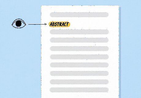Read the abstract to get an overview of the article. The abstract gives you a basic overview of the article in 250-500 words, so you should be able to read it relatively quickly. As you read the abstract, think back to your reason for reading the article. If it's clear from the abstract that the article doesn't support your reason for reading it, you're done. There's no need to read any further if the article won't help you. For example, if you're looking for sources for a research paper, you'll know after reading the abstract if the article is related to your paper or would be potentially helpful for your thesis. If you know you'll have to read the whole article regardless (such as if you're reading it to fulfill a course assignment), the abstract still gives you a brief overview of the whole article that you can use as a sort of map to guide your reading. If there are any words in the abstract that you don't know, go ahead and look them up. If they appear in the abstract, you can be certain they'll appear frequently in the article. Knowing what they mean will help you read more quickly.