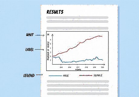 Review the tables and charts in the "Results" section of the article. The tables and charts in a scientific article summarize all of the information that's provided in the "Discussion" section, enabling you to review information at a glance rather than reading through several dense pages of information. In most articles, you'll be able to understand not only the outcome of the study but also the methods the authors used to acquire the information. Look closely at the labels and units on the axes of charts and graphs, as well as the range of values used. The legend and footnotes help you better understand the information presented in the article's figures. Usually, they'll help you make sense of a figure that might not be clear at first glance.