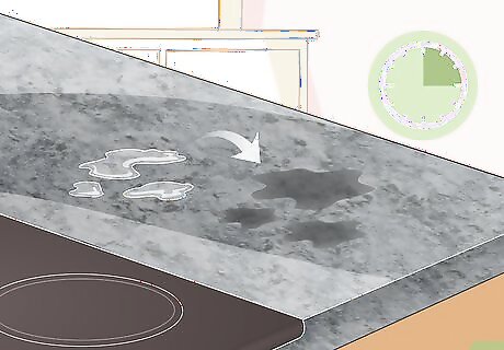 Seal the granite if water droplets absorb into it after 15 minutes. Place a few drops of water on your granite and allow them to sit on the surface for about 15 minutes. If you notice the water beads up and stays on the surface, then you don’t have to reseal the granite. If the drops appear flat or they spread out and darken the stone, then it’s time to reseal your counters. Immediately wipe the water off with a towel to avoid water stains. Typically, you will need to reseal granite once every 2–3 years since it wears away with daily use.Warning: Avoid adding sealant to granite if water still beads on the surface since it will create an unattractive hazy finish.