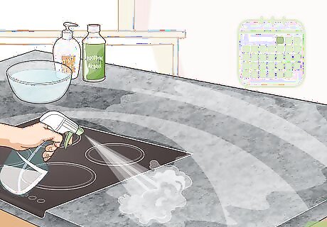 Wash the granite with dish soap and isopropyl alcohol 1 day before sealing it. Combine 1 teaspoon (4.9 ml) of liquid dish soap, 2 tablespoons (30 ml) of isopropyl alcohol, and 1 US pint (470 ml) of cool water in a spray bottle. Apply the cleaner directly to your counters and wipe it off with a microfiber cloth using circular motions. Make sure you remove all of the cleaner so it doesn’t dry on the surface of your granite. After you clean, wait at least 24 hours before applying the sealant. If you try to apply the sealant immediately after cleaning it, then it will not bond with the granite properly and won’t be as effective.