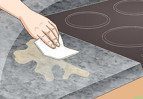 Wipe any excess oil off the granite’s surface with a clean paper towel. Try to soak up as much of the oil as you can if there’s any left on the surface so it doesn’t keep absorbing into the stone. Replace the paper towel when it gets dirty so you don’t spread the oil back on your countertops. Avoid using rags or cloths since oil could leave stains on them.