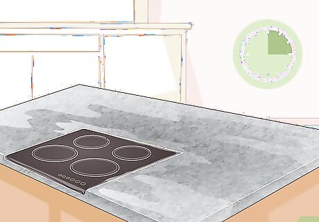 Allow the sealant to absorb into the granite for 15 minutes. Leave the area alone for at least 15 minutes so the sealant has time to soak in. Avoid touching or setting anything on top of your counters while the sealant dries, or else it won’t properly bond with the stone. Check the instructions on the sealant’s packaging since they may recommend letting the sealant soak in for a longer amount of time. Avoid leaving the sealant on your granite longer than the recommended time since it may cause discoloration.