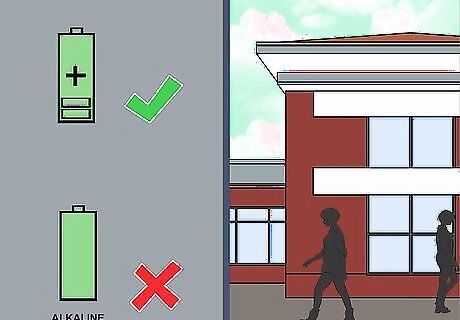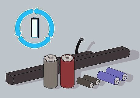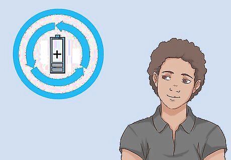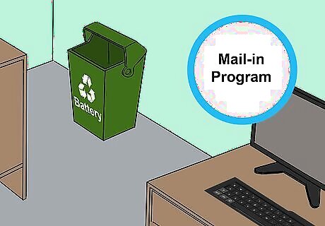 Set up a battery mail-in program in your office. Join a mail-in program and place a bucket or bin in the office mail-room. Have all of the employees tape and collect their dry-cell batteries in the bin, then mail them off once the container is full. The fee for a mail-in program is usually a flat rate of around $60 per load, which lets you send in a large amount of batteries. Prices may vary depending on the type of battery you’re sending in.