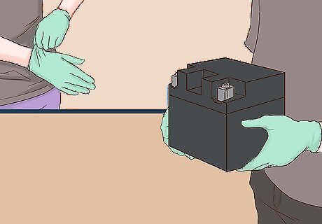 Wear gloves and don’t touch the ends when handling old batteries. Always be careful when you’re preparing to recycle old batteries. In case of any leaked acid or leftover charge, always handle them with latex gloves and avoid touching the ends, where the terminals are located.